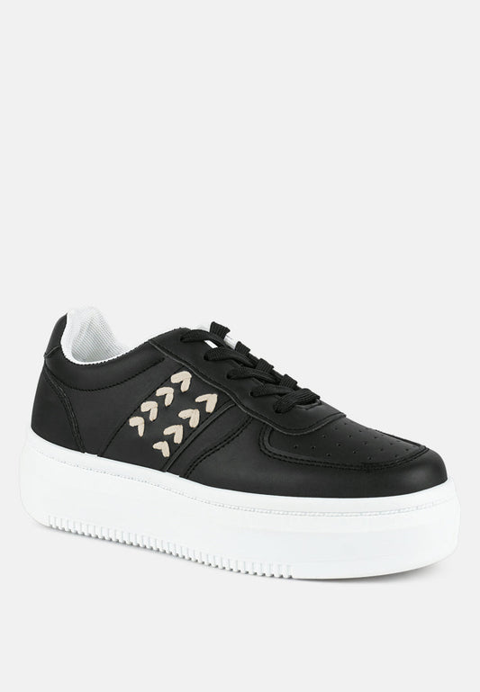 Monigue Faux Leather Cross Stitch Detail Sneakers