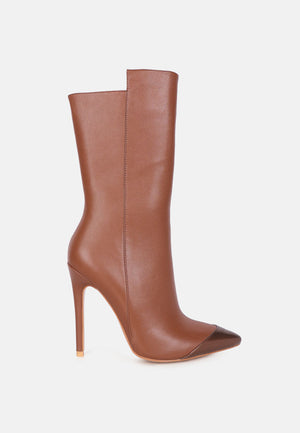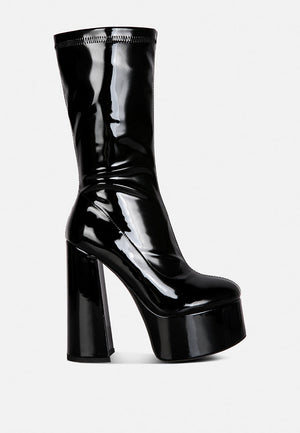 Tzar Faux Leather High Heeled Platfrom Calf Boots