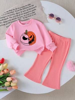 Children's Halloween Graphic Sweatshirt and Flare Pants Set