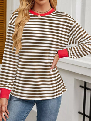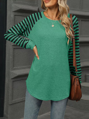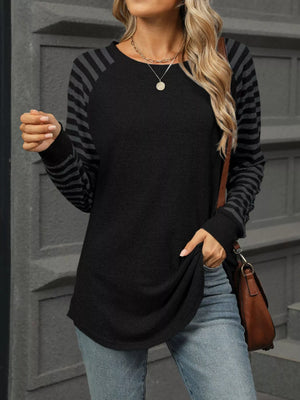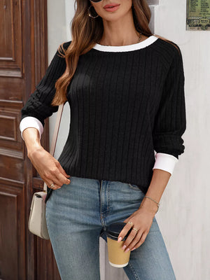 Ribbed Round Neck Raglan Sleeve Knit Top