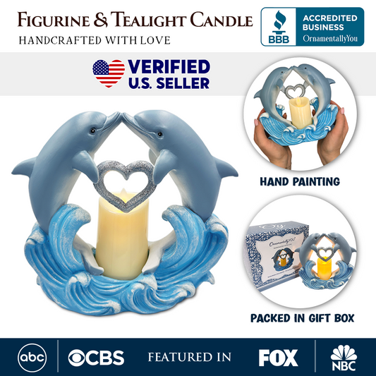 Tides of Affection Dolphin Figurine and Tealight Candle, 7" Romantic Tabletop Valentine or Anniversary Gift
