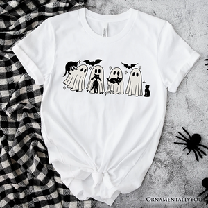 Ghosts and Cats Spooky T-Shirt, Whimsical Halloween Tee for Cozy Autumn Season