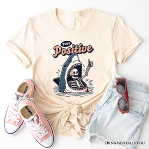 Stay Positive Funny Shark and Skeleton T-Shirt, Mental Health Motivational Tee
