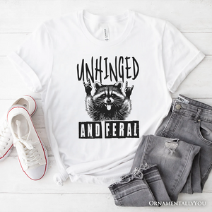 Unhinged and Feral Raccoon T-Shirt, Funny Rock Hands White and Natural Tee for Wild People