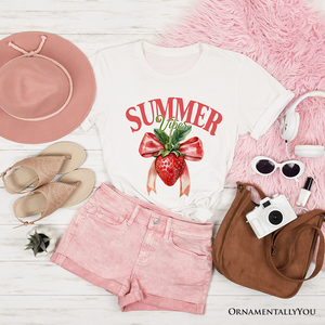 Summer Vibes Strawberry T-Shirt, White, Natural and Navy Seasonal Tee with Coquette Style