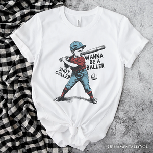 Baseball Retro T-Shirt Wanna Be a Baller, Vintage White and Natural Tee