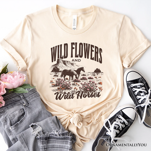 Wild Flowers and Wild Horses T-Shirt, Retro Western White and Natural Tee for Free-Spirited Women