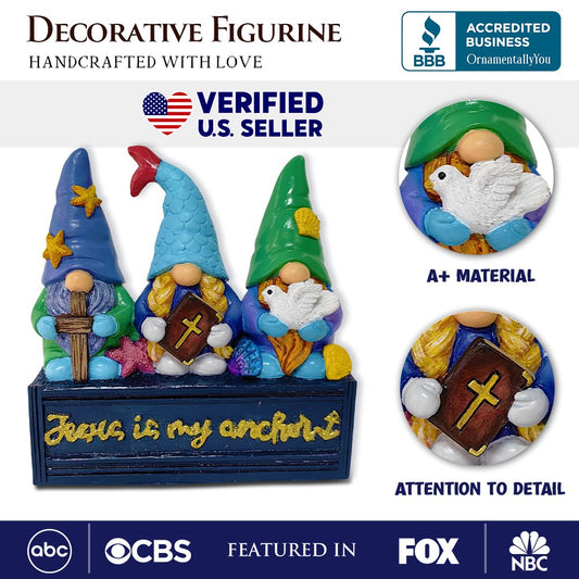 Nautical Themed Religious Gnome Figurine, Jesus is my Anchor 6" Beach House Statue