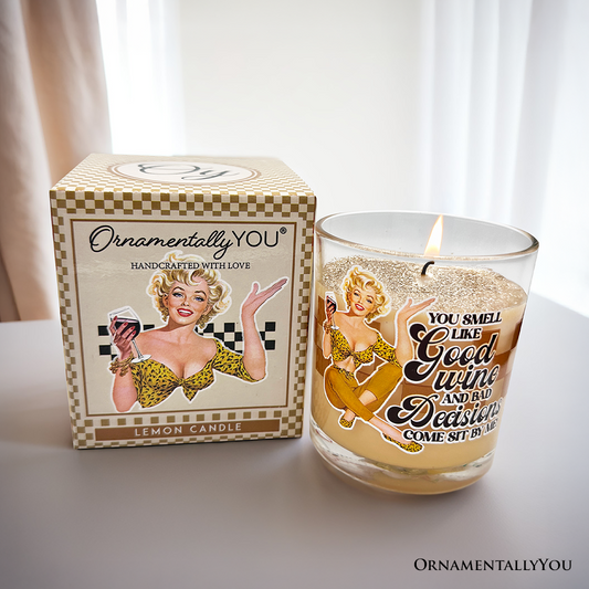 Retro Sass Candle You Smell Like Good Wine and Bad Decisions, Funny Housewife Gift