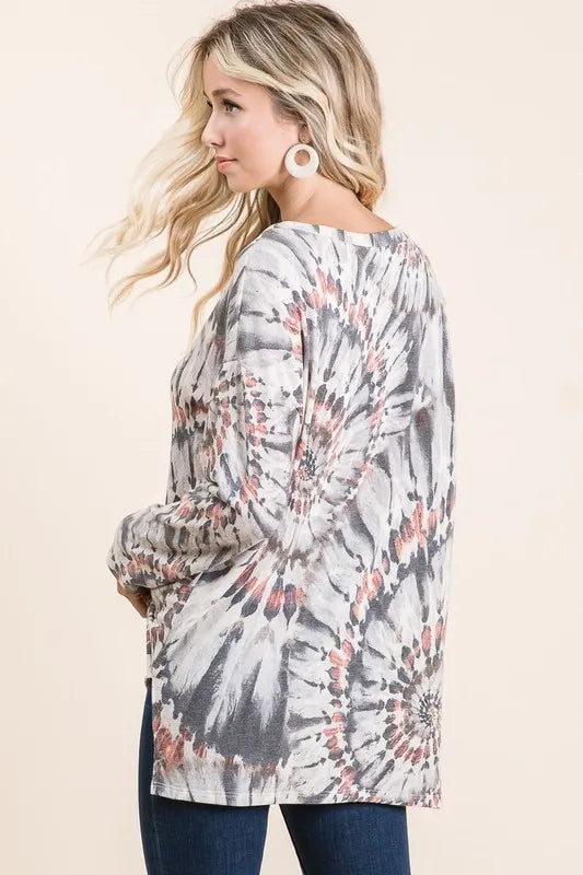 BiBi Tie Dye Terry Top with Contrast Stitching