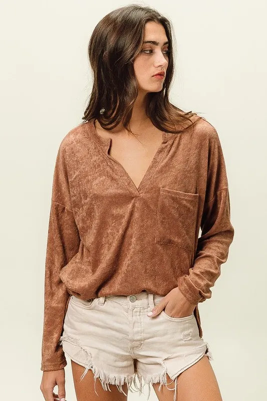 BiBi Jersey Knit Top with Criss Cross Front Neck Detail