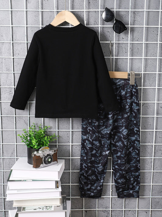 Kids Graphic Round Neck Long Sleeve Top and Pants Set