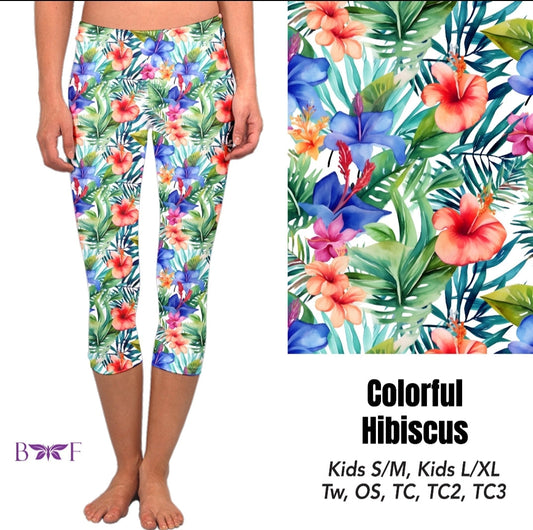 Colorful Hibiscus leggings, capris and skorts with pockets