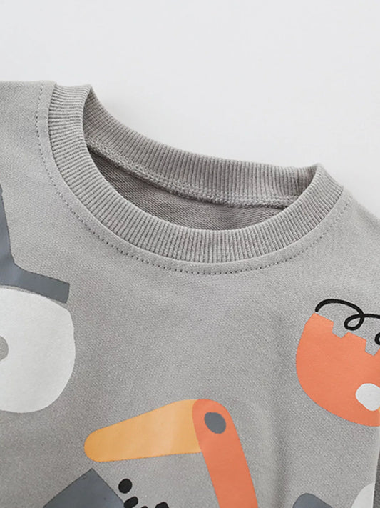 Children's Excavator Applique Long Sleeve Top and Pants Set