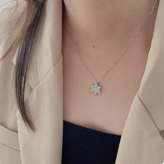925 Sterling Silver Zircon Snowflake Necklace