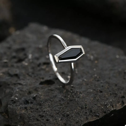 925 Sterling Silver Black Agate Geometric Ring