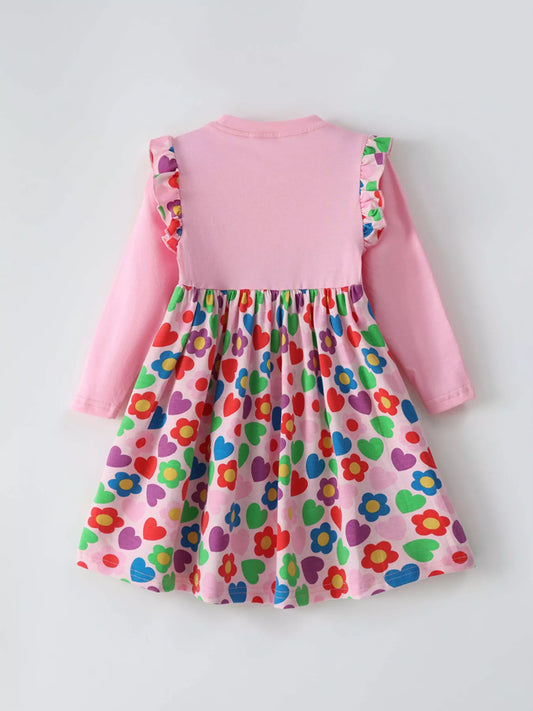 Children's Ruffled Printed Long Sleeve Dress