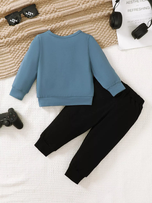 Children's Cartoon Truck Graphic Hoodie & Pants Set