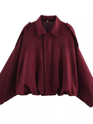Oversized Zip Up Batwing Sleeve Casual Jacket