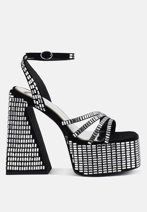 Lustrous Mirror Embellished Flare Block Heel Sandals