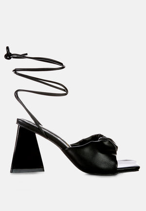 Primavera Ruched Triangular Heel Lace Up Sandal