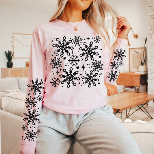 SINGLE COLOR SNOWFLAKES SWEATSHIRT W/ SLEEVE PRINT
