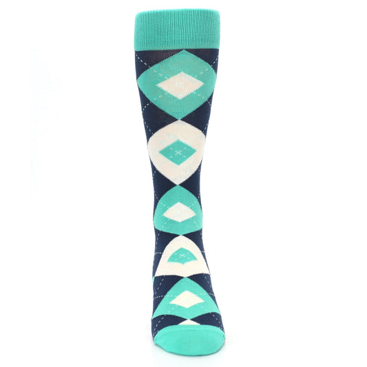 Turquoise Navy Argyle Wedding Groomsmen Men’s Dress Socks