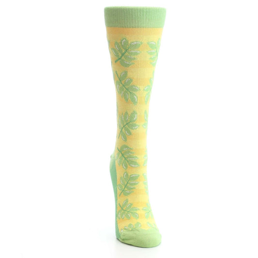 Yellow Green Palm Branches Women's Dress Socks
