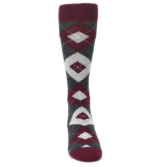 Wine Burgundy Grey Argyle Men's Dress Socks