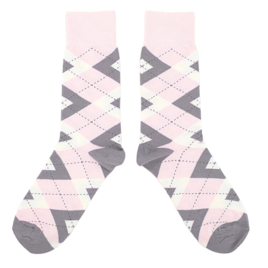 Petal Light Pink Gray Argyle Wedding Men's Dress Socks