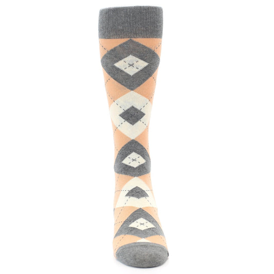 Peach Gray Argyle Wedding Groomsmen Men’s Dress Socks