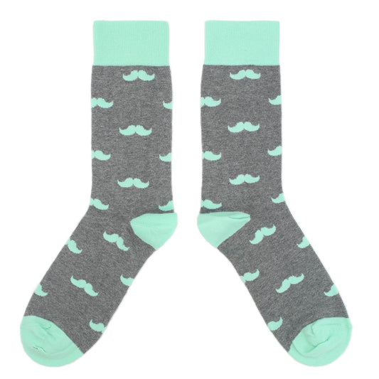 Mint Gray Mustache Wedding Groomsmen Men's Dress Socks with Matching Necktie