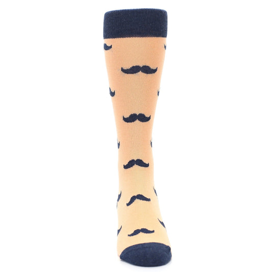 Peach Navy Mustache Groomsmen Wedding Men’s Dress Socks