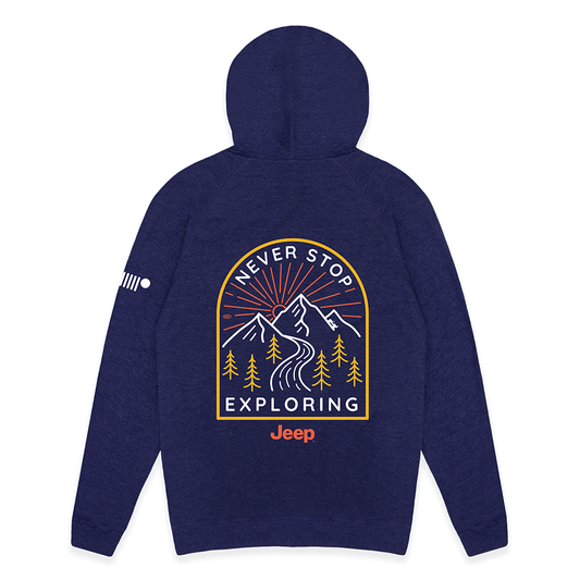 Mens Jeep® Never Stop Exploring Zip French Terry Hooded Sweatshirt - Denim