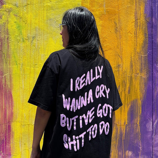 I Really Wanna Cry Tee Double Sided Print Tee - Black
