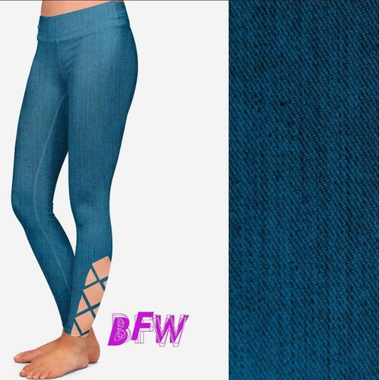 Light Denim criss cross legging and capri