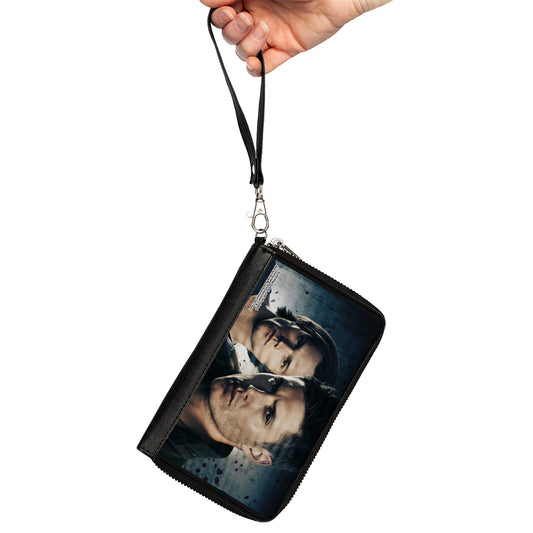PU Zip Around Wallet Rectangle - Supernatural Winchester Brothers CLOSE-UP Pose Grays