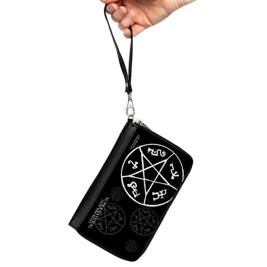 PU Zip Around Wallet Rectangle - Supernatural Dean CRAZY PEOPLE Quote/Winchester Pentagram Black/Grays