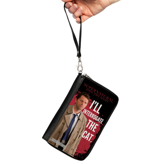 PU Zip Around Wallet Rectangle - Supernatural Castiel I'LL INTERROGATE THE CAT Black/Red/White