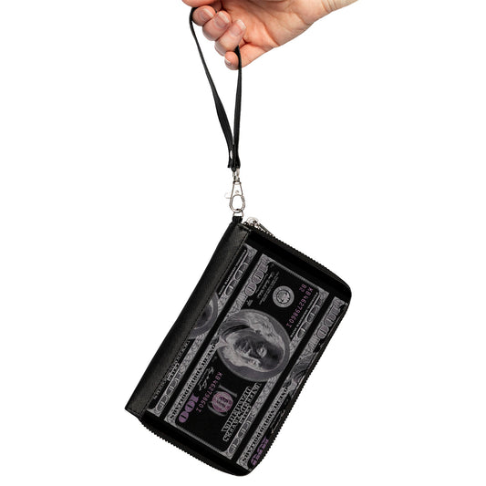 PU Zip Around Wallet Rectangle - 100 Dollar Bills
