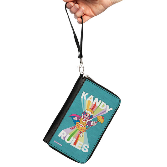 PU Zip Around Wallet Rectangle - Candy Land KANDY RULES King Kandy Pose Teal/Multi Color