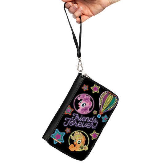 PU Zip Around Wallet Rectangle - My Little Pony Pinkie Pie and Applejack FRIENDS FOREVER Neon Art Black/Multi Color
