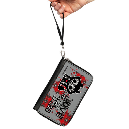 PU Zip Around Wallet Rectangle - Skelanimals Maxx the Bulldog BEWARE LOVE NEVER DIES Pose Black/White/Red