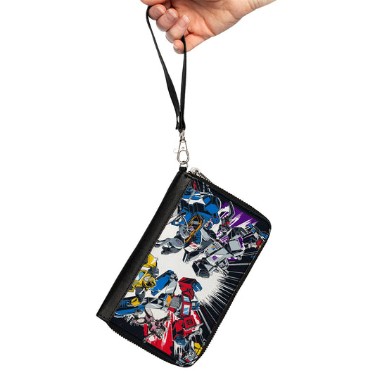 PU Zip Around Wallet Rectangle - Transformers Autobots Versus Decepticons Action Poses and Logos Grays/Black