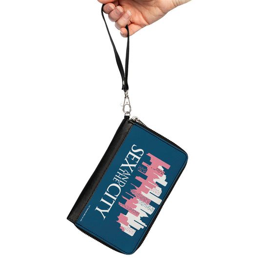 PU Zip Around Wallet Rectangle - SEX AND THE CITY Skyline Title Logo Blue/White/Pink