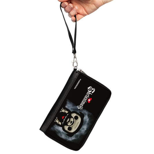 PU Zip Around Wallet Rectangle - SKELANIMALS Diego the Bat Fog Pose and Title Logo Black/White