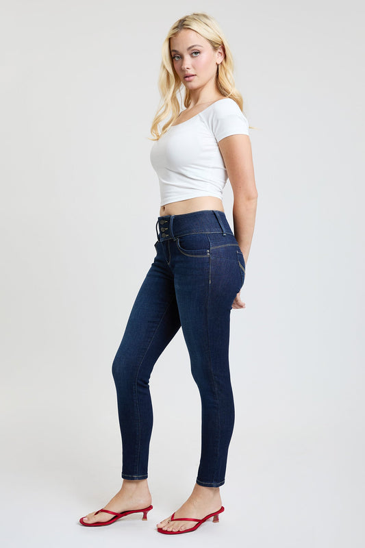 Women's Luxe Mid Rise 3-Button WannaBettaButt Skinny Jeans