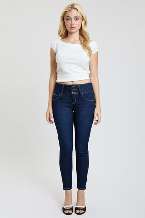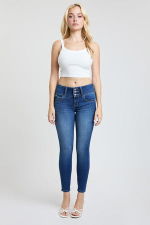 Women's Luxe Mid Rise 3-Button WannaBettaButt Skinny Jeans