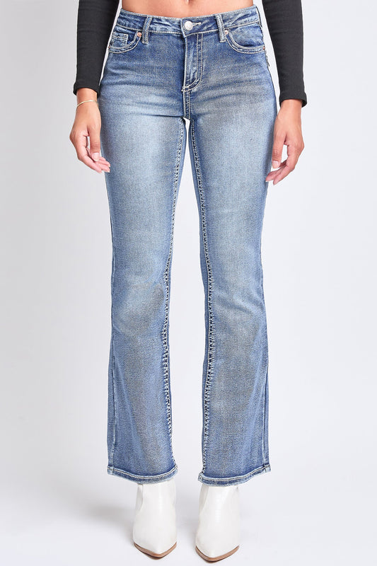 Women's Mid Rise Heavy Stitch Embroidered Bootcut Jeans