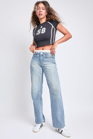 Women's Mid Rise Relax Fit Wide Leg Boxer Jeans